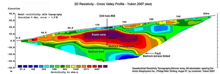 Resitivity/IP is also highly effective in imaging permafrost and groundwater conditions ̶ key factors for a commercial evaluation and environmental assessments.